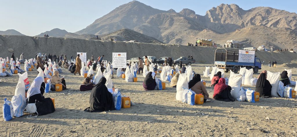 Weiterhin verteilen wir Essenspakete an Geflüchtete an Menschen, die aus Pakistan zurück nach Afghanistan gehen mussten und nun mittellos sind